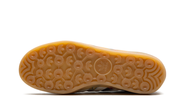 Its premium suede upper receives an exquisite floral embroidery, inspired by the iconic Liberty London patterns, bringing a delicate and authentic look. Tonal Three Stripes keep the aesthetic refined, while the heel offers a subtle touch of contrast. The translucent Indoor Gum sole adds a retro charm, ensuring durability, comfort and excellent grip.