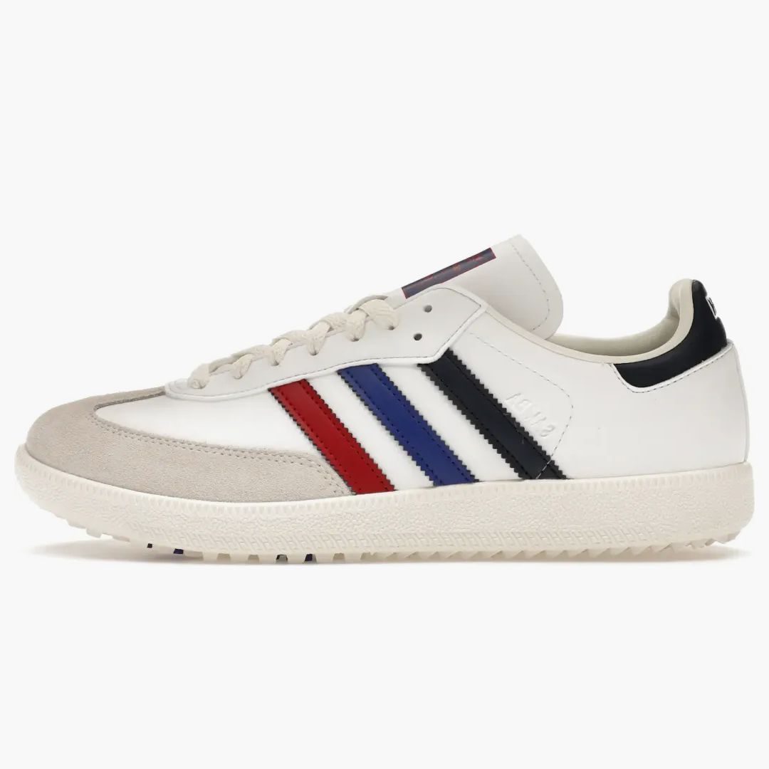 Die Adidas Samba Golf Kith Sneaker in Rot-Blau-Navy vereinen klassischen Stil mit modernen Akzenten. Diese exklusiven Golfschuhe stehen für beispiellose Qualität und zeitlosen Trend, der nie aus der Mode kommt. Das dezente Design in Verbindung mit hochwertigen Materialien sorgt sowohl auf als auch abseits des Golfplatzes für höchste Bequemlichkeit und Eleganz. Ob beim sportlichen Spiel oder beim stilvollen Auftritt – mit diesen Sneakern legt man immer einen glänzenden Auftritt hin. Die unverwechselbare Silhouette und die markentypischen Details machen diesen Sneaker zum Must-have für jeden passionierten Adidas-Liebhaber.Authenticity Guaranteed