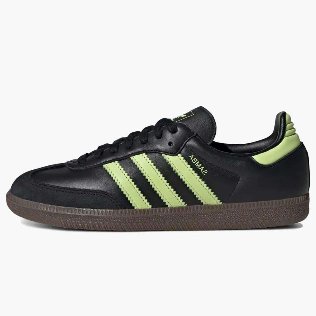 Experience the iconic style of Adidas Samba OG in an exciting Black Pulse Lime Colorway. These timeless sneakers combine classic soccer shoe charm with modern accents that provide certain something. The high -quality mix of leather and suede material guarantees longevity and comfort, while the contrasting colors offer a stylish eye -catcher. Perfect for everyone who wants to set a statement when it comes to fashion. With this version of the Samba legend you manage to complete your outfit with a light hand. A must for every sneaker enthusiast!Authenticity Guaranteed