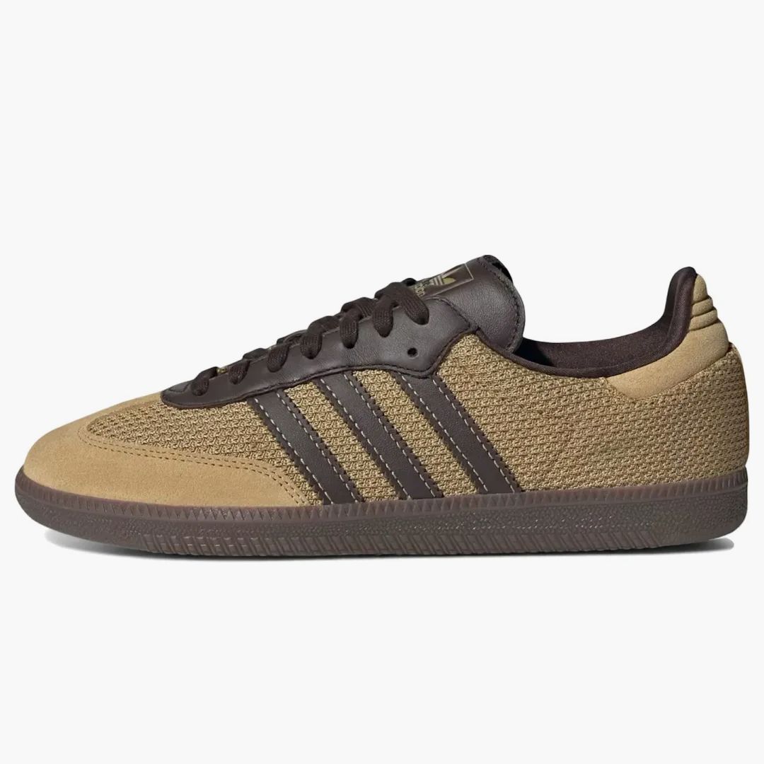 Experience the iconic look of the Adidas Samba OG Golden Beige Dark Brown. Diese Sneaker bringen mit ihrem klassischen Design den Retro-Charme direkt zu Ihren Füßen. The color palette in a gold -bike upper and dark brown ensures a natural, noble look that can be ideally combined for different styles. The hard-wearing rubber outsole offers optimal hold, while the cuddly upper made of suede and leather ensures comfort. The Adidas Samba OG are a must-have for every wardrobe, ideal for relaxed days in the city or sporty activities. A timeless classic that should not be missing in any shoe cabinet.Authenticity Guaranteed