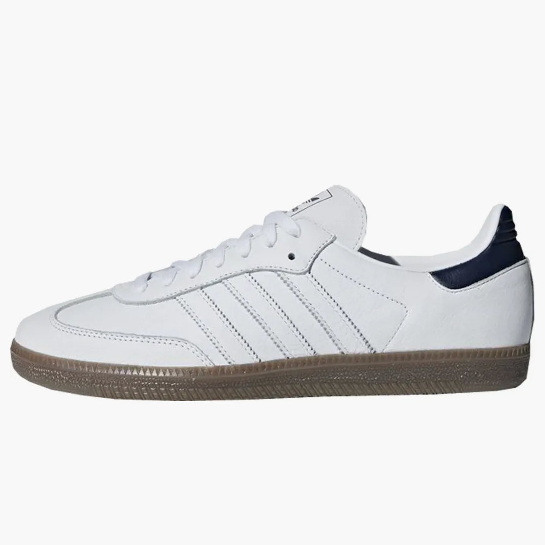 The Adidas Samba OG White Navy Gum is the perfect mix of iconic style and modern design. The classic silhouette of the Samba meets a timeless coloring, which convinces details and a rubberized sole in white leather. Originally designed as a soccer shoe, he has long since developed into everyday favorites. The authentic look is underlined by high-quality materials and excellent processing, which makes it irresistible for both sneaker enthusiasts and fashion-conscious. Perfect for every occasion, whether sporty or casual. Experience genuine quality and style at Hypeneedz.Authenticity Guaranteed
