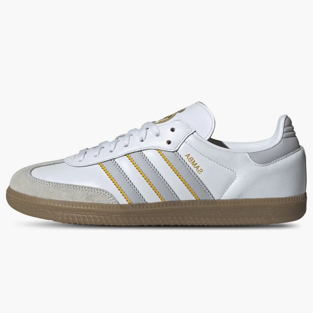 The Adidas Samba Real Madrid combines the classic style of the iconic Samba with the elegant design of the royal football club. This exclusive version of the popular sneaker presents itself with typical details that inspire both fashion experts and football enthusiasts. High -quality materials guarantee a comfortable fit, while the striking three stripes and the subtle coloring provide a timeless look. A must for every lover of sporty-aesthetic footwear who wants to convince both and off the field of quality and style.Authenticity Guaranteed