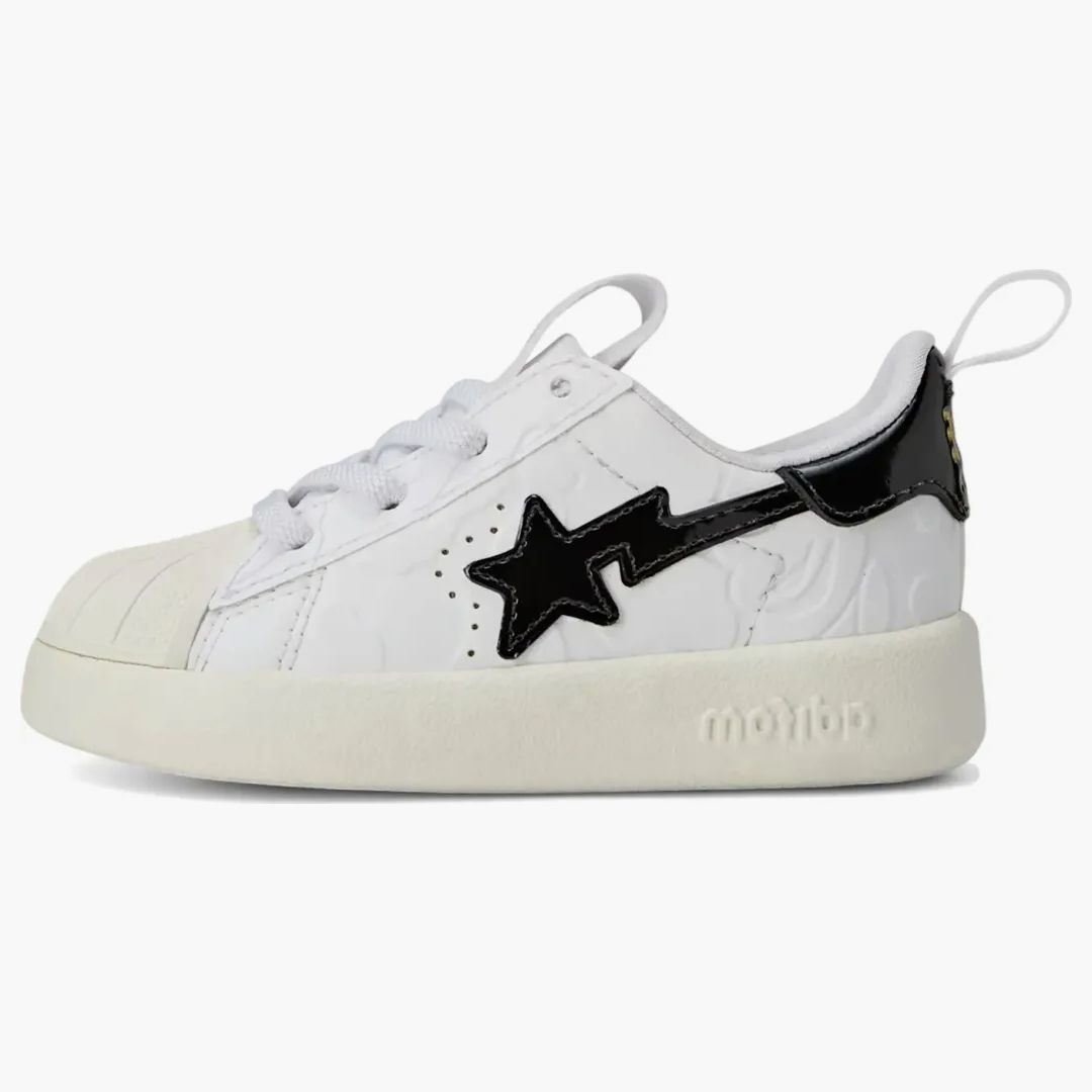 Ein ikonischer Klassiker mit einem urbanen Twist – der Adidas Superstar 360 Bape White Black ist der perfekte Begleiter für kleine Füße, die stilvoll unterwegs sein wollen. Mit dem unverkennbaren Shell-Toe-Design und einem bequemen Slip-on-Stil bietet dieser Sneaker nicht nur Trendbewusstsein, sondern auch optimalen Komfort für den Alltag. Die einzigartige Kollaboration zwischen Adidas und Bape fügt dem Design eine exklusive Note hinzu, die in jedem Outfit für das gewisse Etwas sorgt. Perfekt für den Spielplatz ebenso wie für einen modebewussten Spaziergang. Lass deinem Kind Stil und Komfort neu erleben.Authenticity Guaranteed