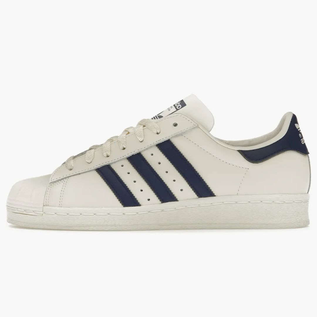 The Adidas Superstar 82 in Cloud White and Dark Blue brings together classic style and modern accents perfectly. The iconic silhouette gives every outfit a hint of casual elegance. The characteristic shell-toe and high-quality materials offer comfort and durability, ideal for everyday life. Be it on the basketball court or in the city-this sneaker is a must-have for every fashion-conscious shoe lover. Now discover the mixture of retro charm and contemporary design that makes the Superstar 82 the ultimate favorite.Authenticity Guaranteed