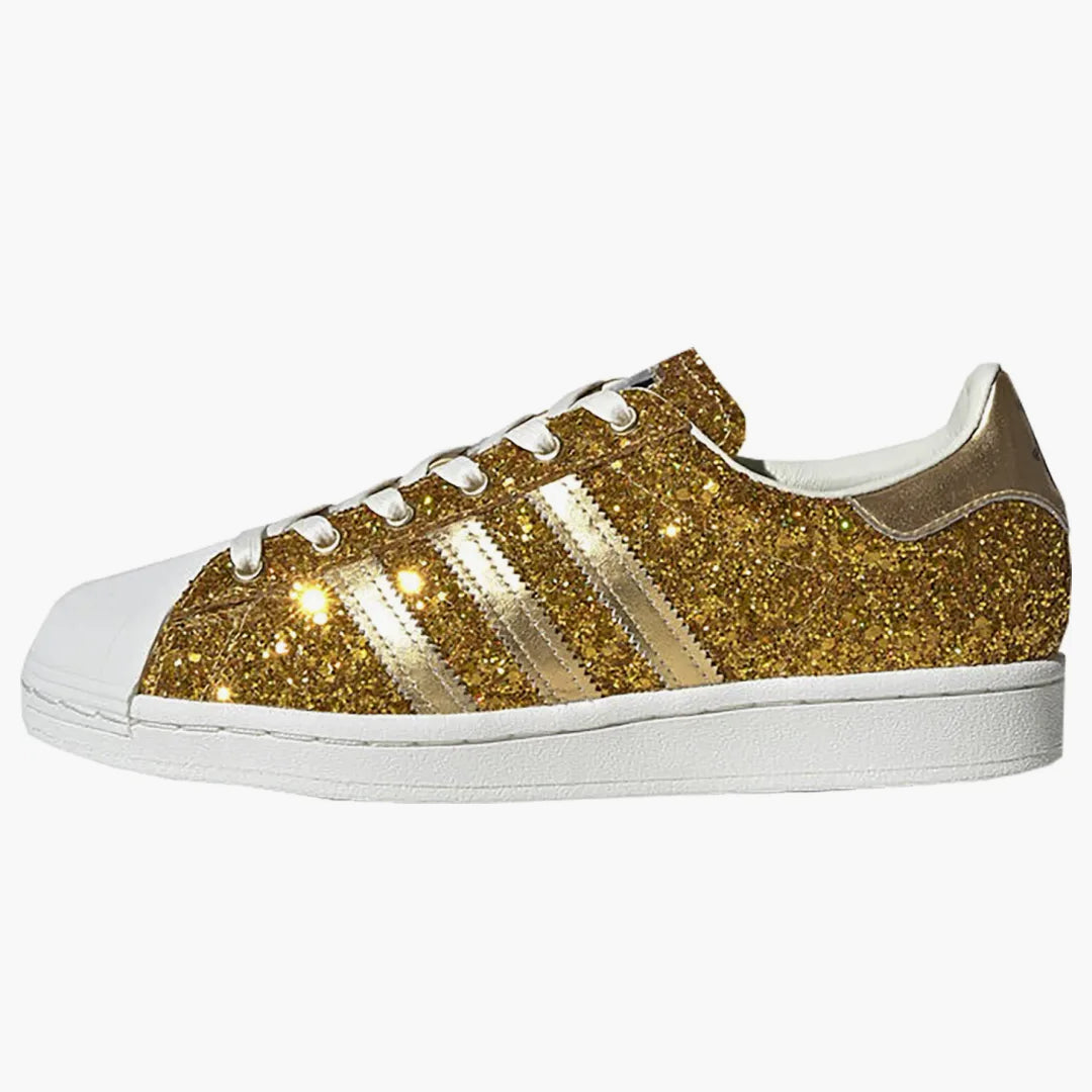 The Adidas Superstar Gold Metallic for women embodies timeless elegance paired with a modern shine. The classic design gives a stylish upgrade through a luxurious golden metallic tone that can be perfectly combined with every outfit. The hard-wearing rubber sole and the iconic shell-tea design offer comfort and durability so that every step feels as good as it looks. With this sneaker, every outfit becomes a fashionable statement. Experience the incomparable comfort and the noble style that only the Adidas superstar can offer.Authenticity Guaranteed