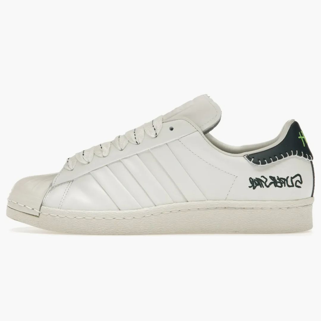 Die Adidas Superstar Jonah Hill Edition verbindet zeitloses Design mit kreativer Raffinesse. Der weiße Lederaufbau wird durch marine- und cremefarbene Akzente stilvoll ergänzt. Handgenähte Details und ein gesticktes Markenlogo verleihen den Schuhen einen einzigartigen Look, während eine robuste Gummisohle den klassischen Stil der Superstars unterstreicht. Diese Kollaboration zwischen Adidas und dem vielseitigen Künstler bringt frischen Wind in das ikonische Sneaker-Design. Perfekt für alle, die Stil und Komfort schätzen.Authenticity Guaranteed
