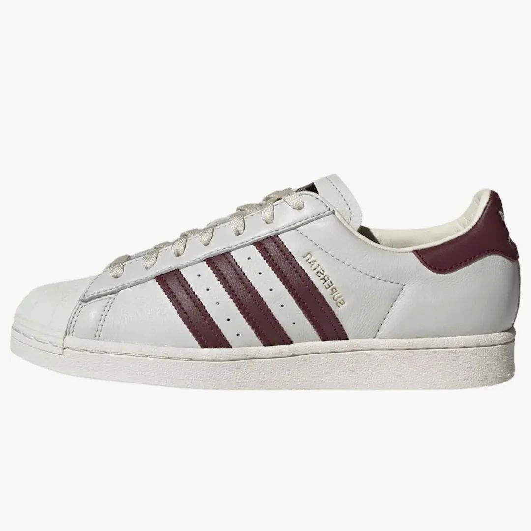 Der Adidas Superstar Off White Maroon vereint ikonisches Design mit einem modernen Twist. Die klassische Silhouette, die weltweit für ihren Stil und Komfort anerkannt ist, präsentiert sich hier in einer trendigen Farbmischung aus Off-White und Maroon. Perfekt für den Liebhaber von Streetwear, der seine Kollektion um ein unverwechselbares Paar Sneaker erweitern möchte. Die hochwertige Verarbeitung und das markentypische Streifen-Design machen diesen Schuh zu einem Muss für jeden Schuhschrank. Egal, ob beim Stadtbummel oder beim Treffen mit Freunden, dieser Sneaker setzt ein stilvolles Statement. Lasse dich von den außergewöhnlichen Details und der bewährten Qualität der Marke Adidas begeistern und bringe frischen Wind in deinen Look.Authenticity Guaranteed