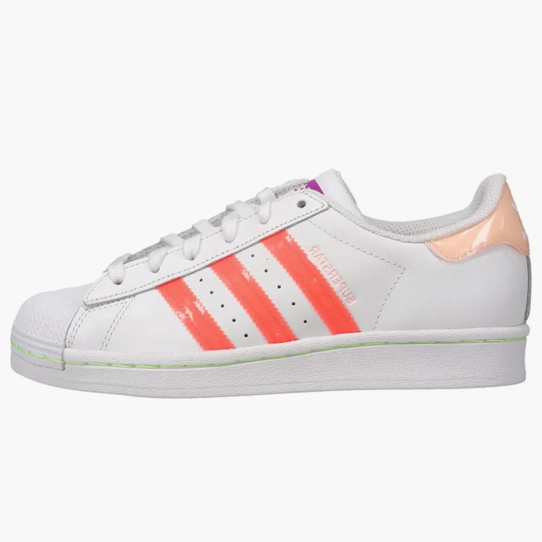 A real classic that never gets out of fashion: The Adidas Superstar in Signal Pink brings a breath of fresh air to the iconic look. These women's sneakers combine the best of traditional design and modern coloring. The timeless silhouette made of high -quality leather becomes an indispensable eye -catcher for every outfit due to the striking pink color. The striking Shell Toe front area in particular remains a strong distinguishing feature and ensures durability and comfort. Whether for the daily trend look or as a stylish highlight on special occasions-the Adidas Superstar Signal Pink is the right choice. Combine it at will and enjoy the feeling of good style and comfort, day after day.Authenticity Guaranteed