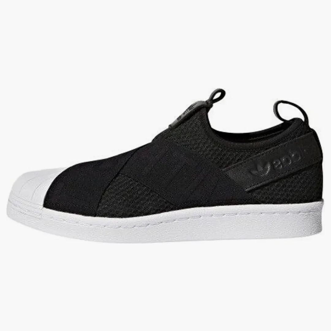The Adidas Superstar Slip-on Core Black for women clubs iconic design with modern comfort. Without classic laces, this sneaker offers an elegant look and maximum wearing comfort. The black stretch straps ensure safe hold and style, while the characteristic rubber toe cap underlines the classic adidas look. Perfect for everyone who is looking for something special and still don't want to do without comfort. Safe this must-have and set a fashionable statement.Authenticity Guaranteed