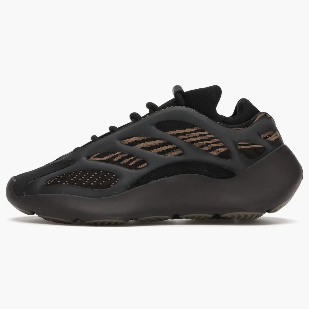 The Adidas Yeezy 700 V3 Clay Brown present themselves in a harmonious game from earthy tones and futuristic design. With a predominantly black mesh surface, which is accentuated by fine, light brown lines, and the striking, transparent cage element, the sneakers radiate elegance and dynamics. The robust EVA foam in the midsole ensures comfortable wearing comfort, while the reinforced toe area and reflective 3M details on the front cap make this shoe the perfect companion for the urban lifestyle. A touch of modernity meets proven colors-a must-have for sneaker fans.Authenticity Guaranteed