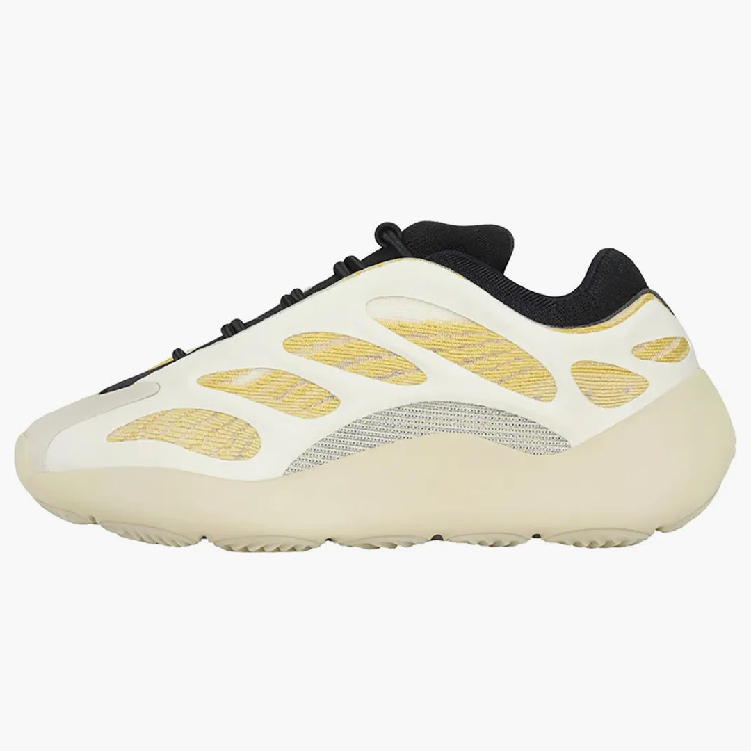 With the Adidas Yeezy 700 V3 Saffflower for children, Adidas, together with Kanye West, is launching a refreshing version of her popular sneaker series. These shoes are characterized by a unique design that combines comfort with style. The shoe consists of a neutral upper of monofilament mesh and radiant yellow accents that shimmer through in the background. The bright RPU cage, which causes a sensation in the dark, should be emphasized. The black inner shoe construction ensures comfortable hold and safety for the small feet. The Herringbone rubber sole also ensures optimal hold on any surface. Perfect for the younger generation, the version published on November 14, 2020 offers comfort and style in one.Authenticity Guaranteed