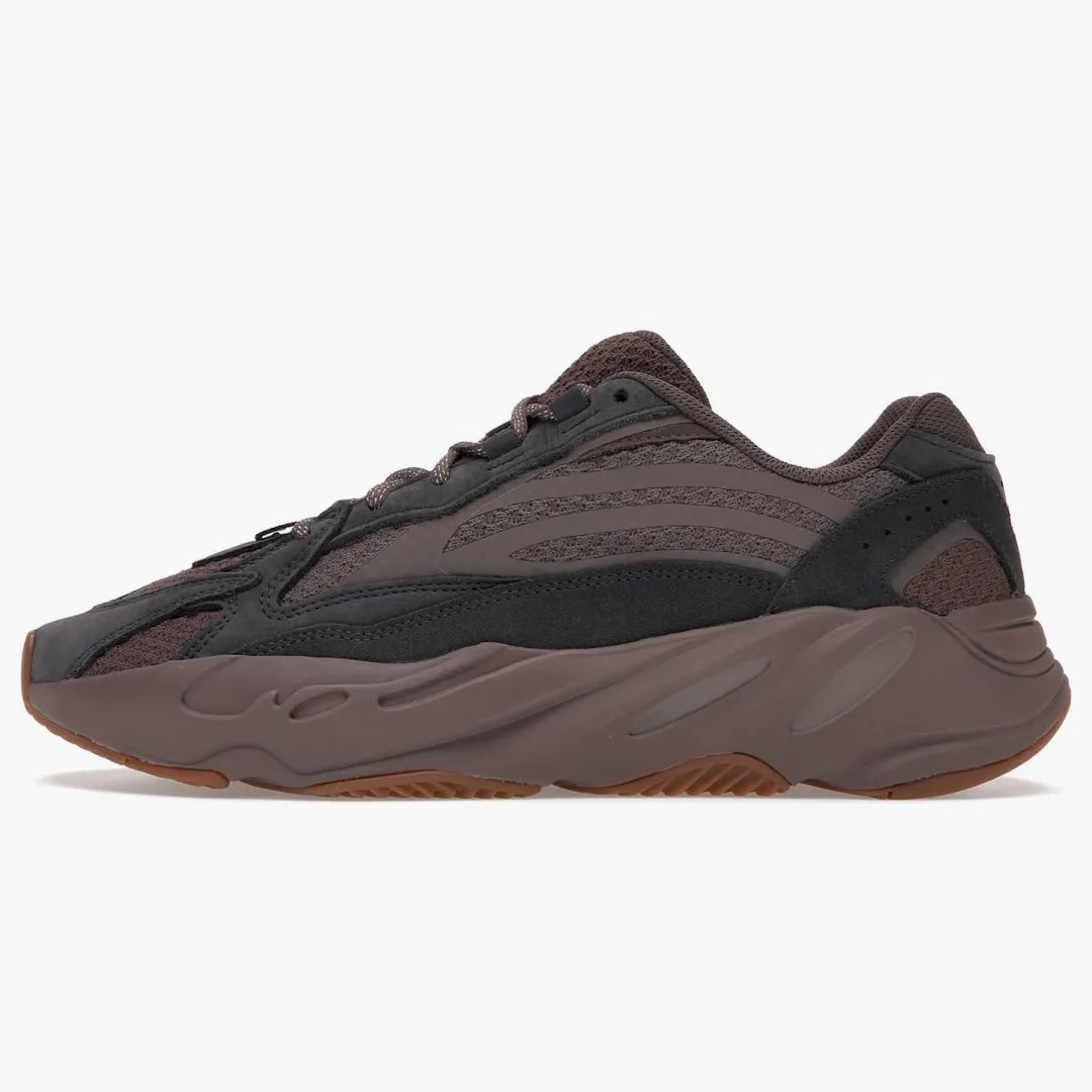 The Adidas Yeezy Boost 700 V2 Mauve impresses with an earthy design and striking style. This model combines a brown-colored mesh upper material with dark gray Nubuk overlays that together create a harmonious look. The characteristic three strips of Adidas add a subtle dynamic to the simple design. The shoe is rounded off by a sculptural boost oversole, which stands for the incomparable comfort, the Yeezy lover. A hard -wearing rubber outsole complements the stylish look perfectly. The release took place in September 2021 and the sneaker immediately established itself as a highlight among connoisseurs. Immerse yourself and experience the perfect symbiosis of functionality and style with the Yeezy Boost 700 V2 Mauve.Authenticity Guaranteed