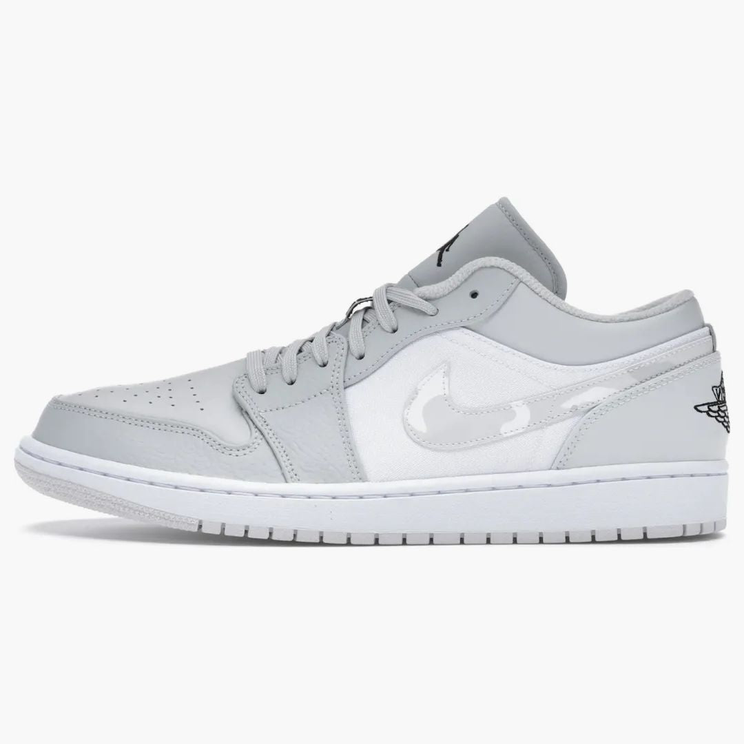 The Jordan 1 Low White Camo captures the spirit of an iconic design in a fresh presentation. In this version, elegant white and gray tones meet sophisticated camouflage elements that are visibly emblazoned on the famous Swoosh. The shoe combines stylish details, such as the perforated leather toe and the high-contrast ankle and sole parts, into a harmonious total work of art. The black jumpman on the tongue and that Air Jordan Wings logo on the heel area set striking accents. Published in 2020, the Jordan 1 remains Low White Camo A timeless statement for sneaker lovers.Authenticity Guaranteed