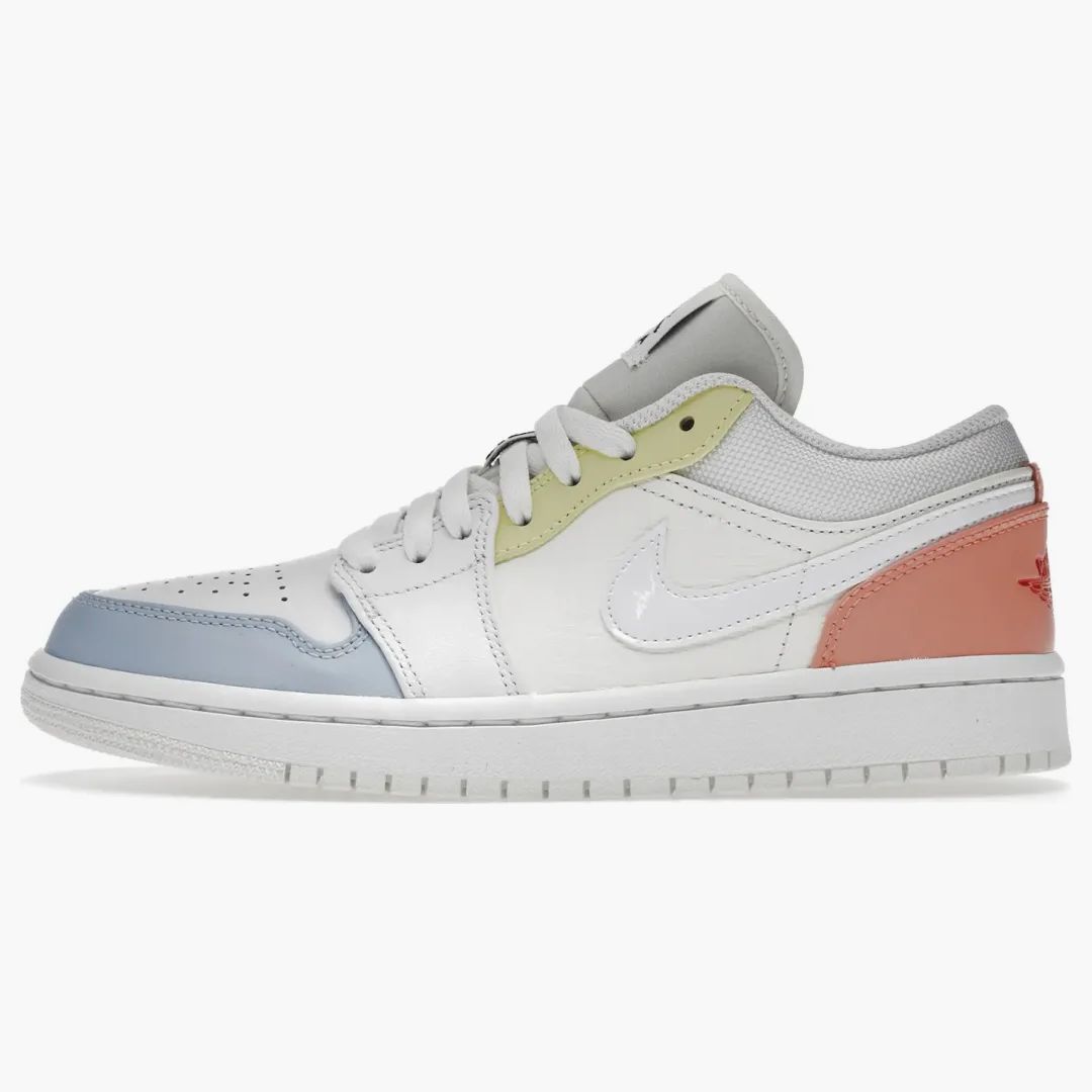 The Jordan 1 Low To my first coach is a tribute to the first mentors of many athletes. The sneakers come in a versatile color palette with a beige leather, a white front cap and a pastel blue forefoot insert. Subtle yellow details and a bright red 'Wings' print on the Coral verses set accents, while the contrasting white Swoosh is enthroned on a cream-colored background. Black details such as the Jumpman logo and the '23' on the laces complete the design. With its introduction in May 2021, this model not only offers external aesthetics, but also a deeper emotional connection to the experience of every athlete with its first coach.Authenticity Guaranteed
