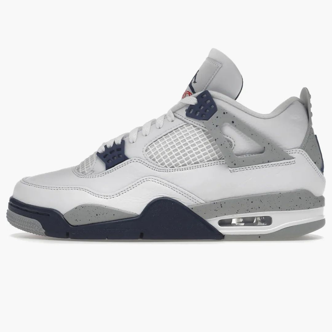 The Jordan 4 Retro Midnight Navy combines classic design with fresh style. The flawless white leather surface is underlined by black accents on the stable wings and the heel tab, which shows the legendary Jumpman. Depth, navy blue Ösen set a striking color accent. On the tongue, another Jumpman logo attracts attention in a strong red. The midsole made of polyurethane offers excellent wearing comfort with built-in Air technology, which is visible in the heel area and in the forefoot. This sneaker made its debut in October 2022 and is an absolute must-have for sneaker lovers who appreciate a stylish, modern, but still timeless design.Authenticity Guaranteed