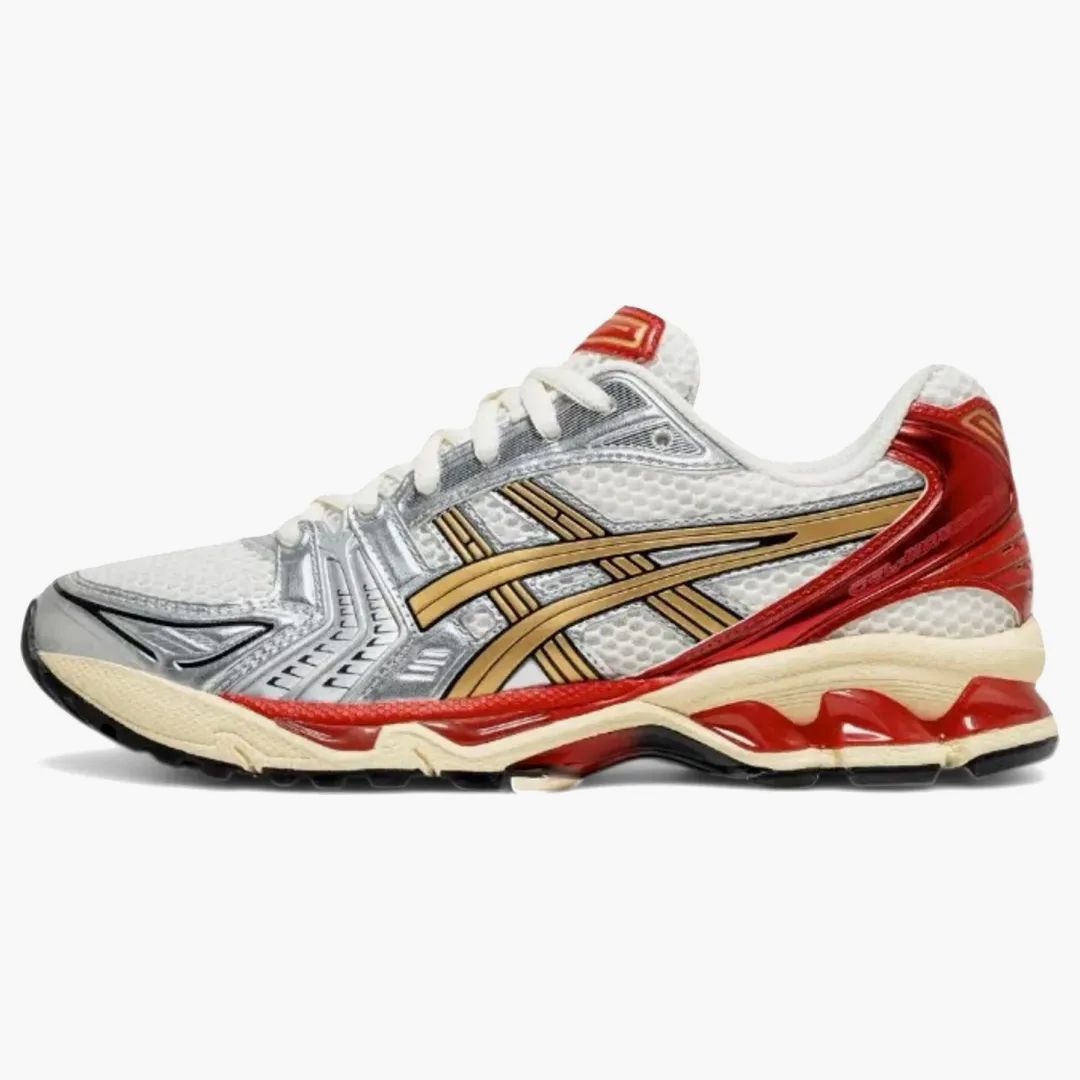 The Asics Gel-Kayano 14 sneakers in the special 'Just Say No' Edition combines timeless aesthetics with modern performance. The noble color in cream/pure gold ensures a striking but stylish look that fits perfectly into every wardrobe. Known for their comfort, the Gel-Kayano sneakers offer outstanding damping and hold, ideal for everyday life or sporting activities. High quality materials and the excellent processing underline the first -class quality of this shoe and make it a must for everyone who attaches value to style and function.Authenticity Guaranteed