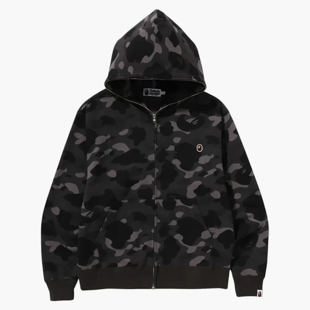 Bape One Point Color Camo Cropped Full Zip Hoodie Black