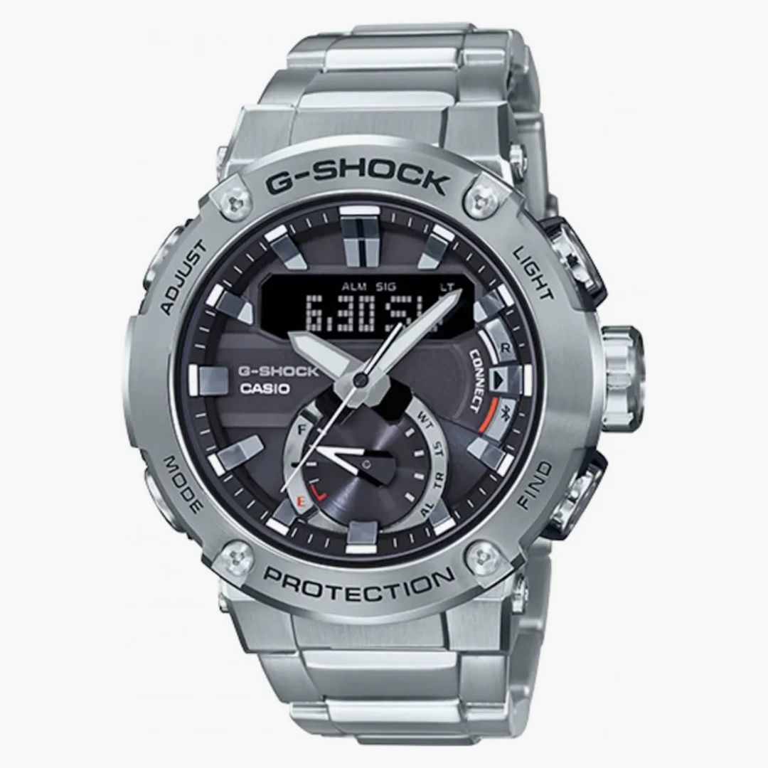 The Casio G-Shock GStB200D-1A combines robust functionality with a modern style for the urban adventurer. This watch is not only particularly durable and shockproof, but also a versatile companion in every situation, be it in nature or the big city. Equipped with innovative solar technology, it guarantees reliability without a frequent battery change. Classic design meets well -thought -out features that convince with their durability and precision. The ideal choice for everyone who value quality and technology.Authenticity Guaranteed