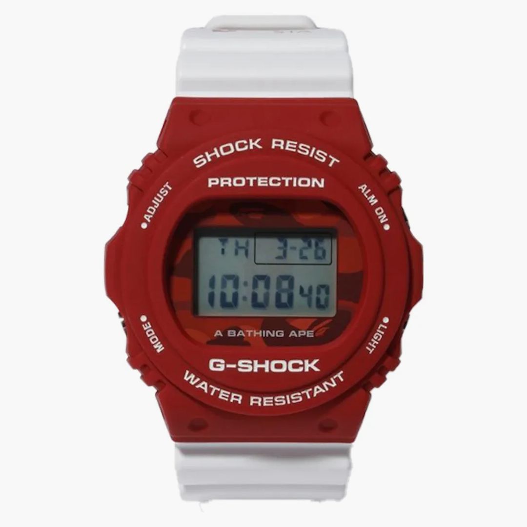 Discover the ultimate fusion of style and resistance with the Casio G-Shock X Bape DW-5750. This extraordinary watch combines the iconic robustness of the G-Shock series with the unique design accents from Bape. Perfect for adventurous people who value design and reliability. The distinctive look is supplemented by a resistant housing that is created for extreme conditions. This watch is not just a timepiece, but a statement. Let yourself be inspired by their functionality and the unique design.Authenticity Guaranteed