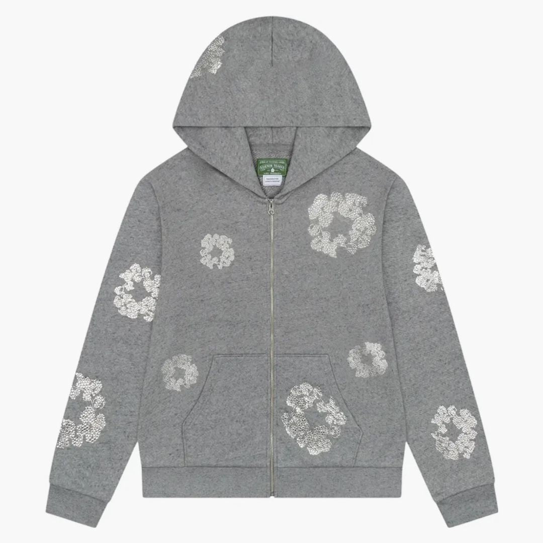 Denim Tears Cashmere Swarovski Cotton Wreath Zip Hoodie Grey
