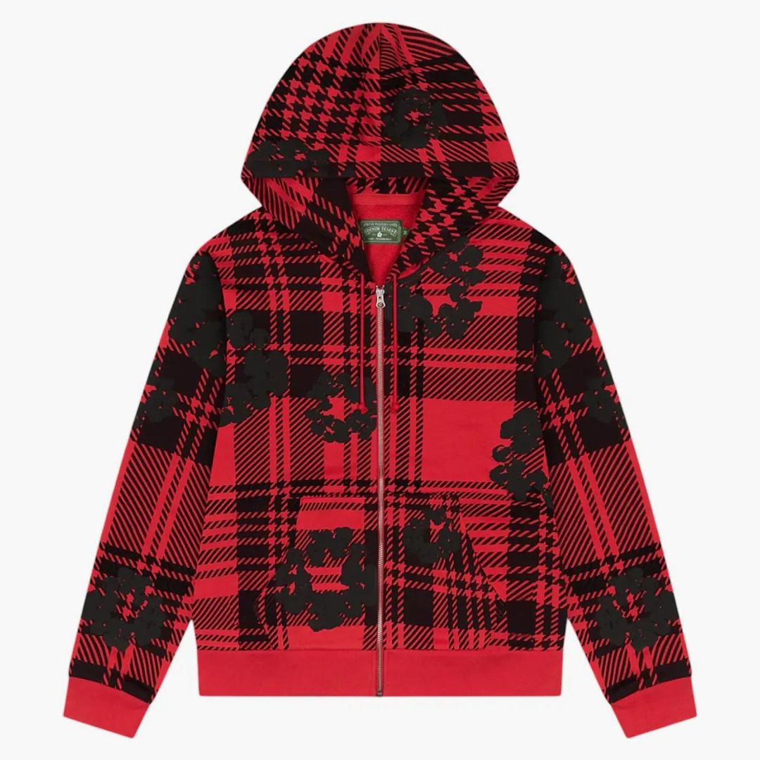 Denim Tears Plaid Cotton Wreath Zip Hoodie Red