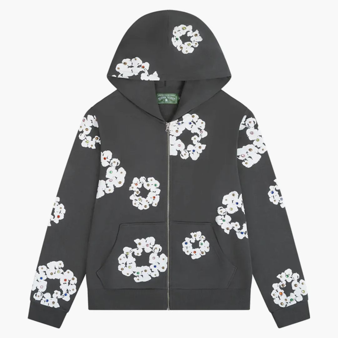Denim Tears Rhinestone Cotton Wreath Zip Hoodie Vintage Black