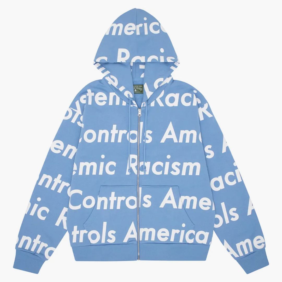 Denim Tears X Arthur Jafa Systemic Racism Controls America Zip Up Hoodie Dusty Blue