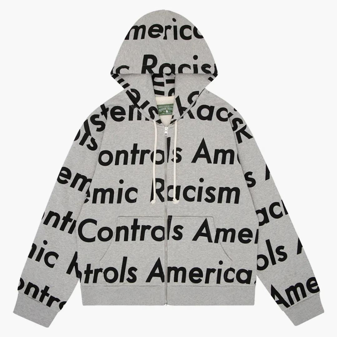 Denim Tears X Arthur Jafa Systemic Racism Controls America Zip Up Hoodie Heather Grey