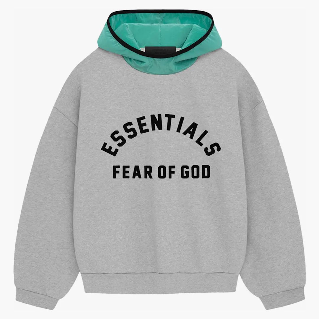Fear of God Essentials Nylon Fleece Hoodie Light Heather Gray/Mint Leaf