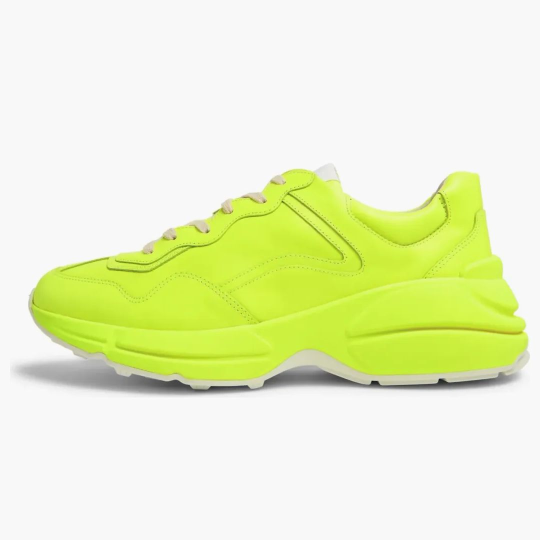 The Gucci Rhyton Fluo Yellow Sneaker combines contemporary luxury feeling with an urban flair. Its striking design is perfected by shining accents and looks particularly stylish. Made of high -quality materials, this sneaker not only offers first -class wearing comfort, but also sets a fashionable statement. Whether with a casual leisure outfit or the upscale streetwear look-the rhyton adapts in many ways. Anyone looking for a shoe that combines functionality with an exclusive style will find it here. Discover the special and lift your look to a new level.Authenticity Guaranteed