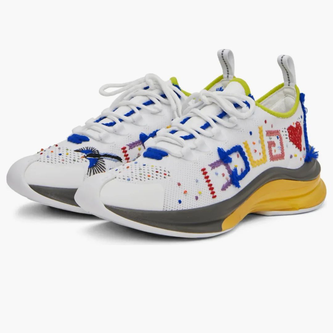 Discover the unique style of the Gucci Run Lovelight White Blue Red Sneaker. This shoe combines Italian elegance with youthful fresh and sporty charm. The harmonious combination of white, blue and red ensures a high -contrast design. Perfect for everyday life or extraordinary occasions, this sneaker sets a fashionable statement. With high-quality materials and the typical Gucci quality, it offers comfort without compromises. A must-have for everyone who always wants to be at the front.Authenticity Guaranteed