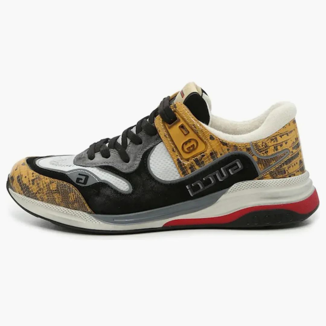 The Gucci Ultrapace Yellow Tejus Printed combines the unmistakable elegance of the brand with a touch of retro charm. In strong yellow, this sneaker attracts everyone's attention and at the same time offers classic comfort. The high -quality material ensures durability and exquisite feel. Every detail of this shoe is an expression of style consciousness and premium quality-perfect for daily adventures or special occasions. Now discover the fusion of excellent design and luxurious comfort.Authenticity Guaranteed