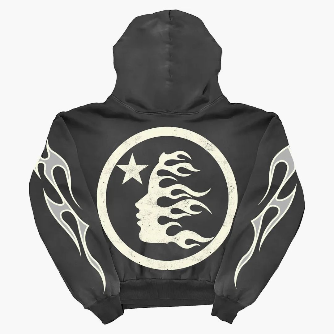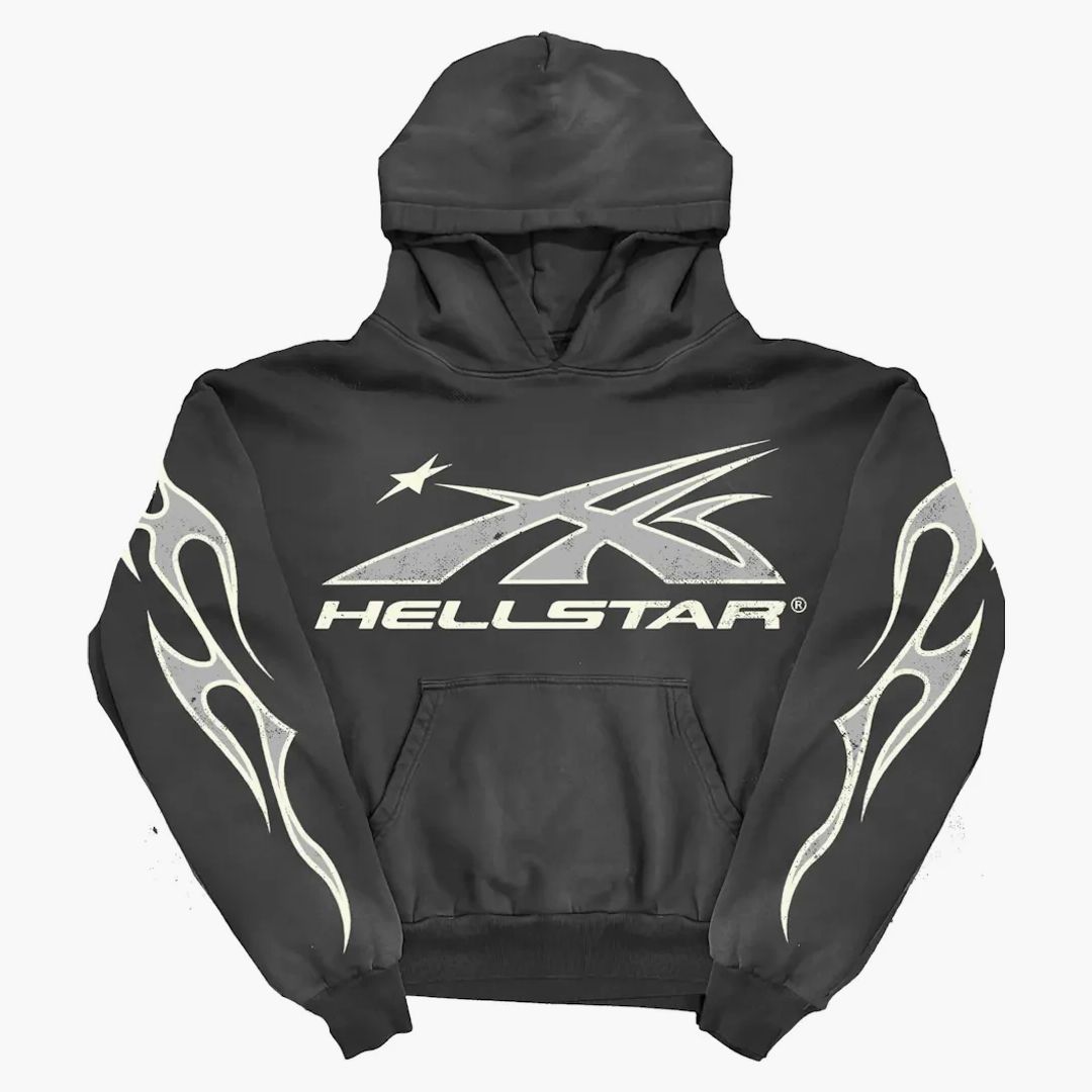 Experience the urban charm of the Hellstar Sport Hoodie in black, made from individually manufactured fleece in Los Angeles. The material captivates with a vintage look, supported by special washing and spray techniques. The striking light star graphics on the chest, sleeves and back give this part its unique character. A slightly oversized cut ensures stylish comfort. Perfect for everyone who wants to combine style and convenience.Authenticity Guaranteed