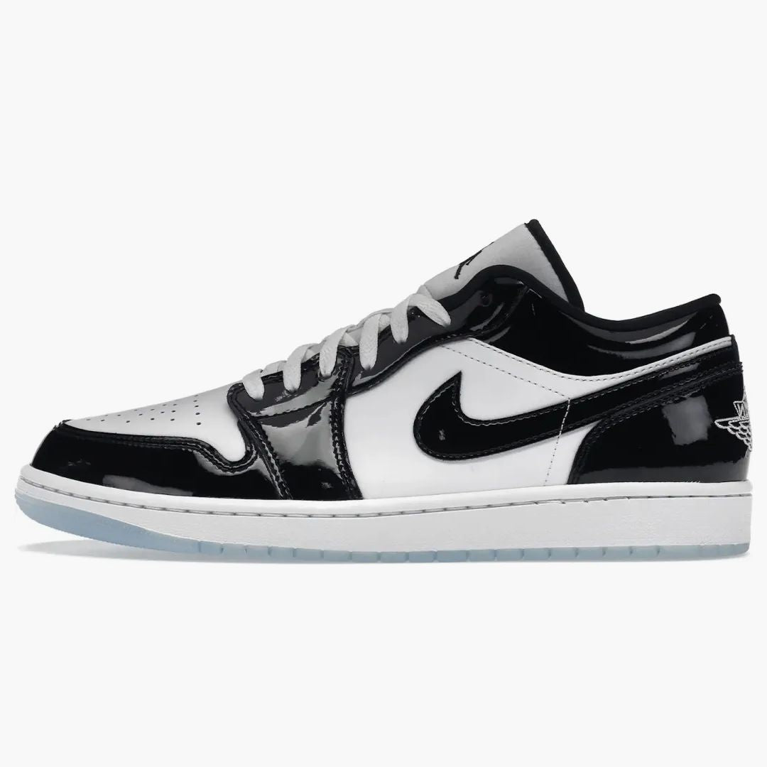 The Air Jordan 1 Low SE Concord are a homage to iconic designs and combine elegant black paint leather with classic white upper materials. Inspired by legendary colors of the brand, this sneaker stands for timeless class and sporty style. The detailed design is due to a translucent blue outsole and a striking Air Jordan Wings logo completed on the heel. Published on January 17, 2023, fit seamlessly into the ranks of Jordan's popular models and are a must for all collectors and fashion enthusiasts alike. Discover your new favorite edition at Hypeneedz!Authenticity Guaranteed