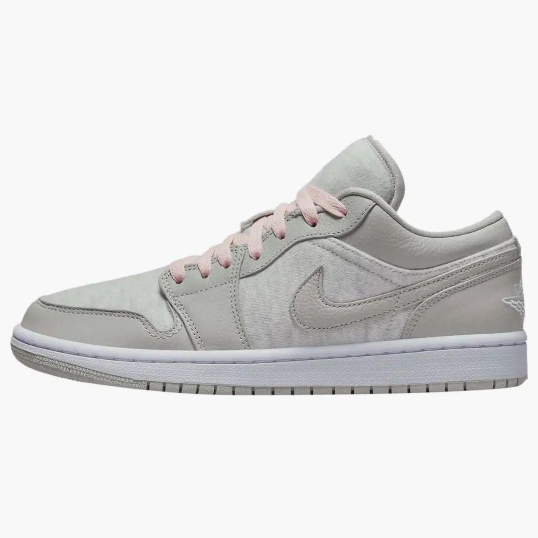 The Jordan 1 Low Se Light Iron Ore for women offers an elegant combination of light gray design with white and gentle pink accents. The model combines high -quality materials such as Jersey, Mesh and Canvas, while leather overlays on toes, heels and ensure a stylish look on the side part. The gray Nike Swoosh and the white Air Jordan Logo on the heel complete the overall picture. The structured outlets promise optimal hold. The light pink laces, which give a touch of vitality, are particularly striking. Since its publication on April 1, 2022, this model has been a must for every sneaker enthusiast.Authenticity Guaranteed