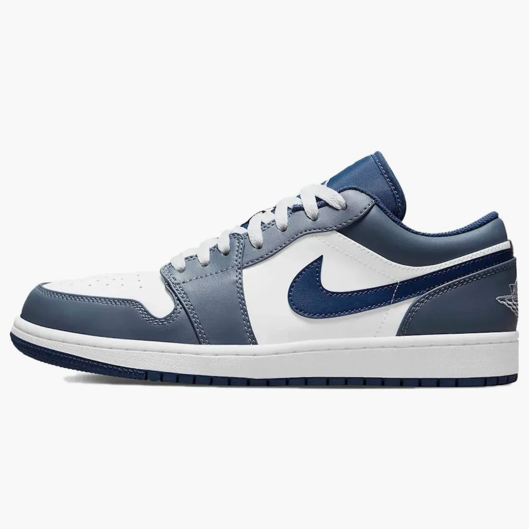 The Jordan 1 Low Slate Blue Navy (GS) combines legendary design with unique comfort. This model for school children impresses with its stylish color combination of white, slate blue and navy blue. The upper material made of high -quality leather is perfectly staged by slate blue accents on toe box, eyelets, heel and padded collar. The navy-colored Nike Swoosh runs elegantly along the sides and harmonizes with the inner lining and the nylon tongue, decorated with a embroidered white jumpman. The classic Jordan 1 sole structure convinces with a white foam sole and a robust navy-colored rubber outsole, which is provided with the iconic Jordan stars and circles. Published in April 2022, this sneaker is a must for style -conscious young sneaker fans.Authenticity Guaranteed