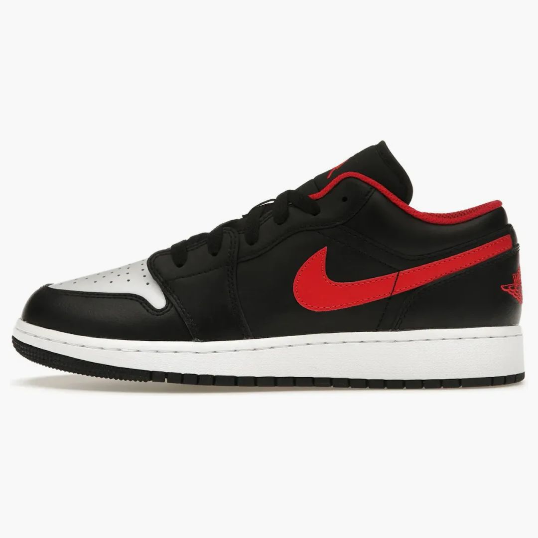 The Jordan 1 Low White toe (GS) shoes for young sneaker fans offers iconic design with a modern update. The combination of black and white leather gives the shoe a timeless aesthetics. Accents in fire red such as the indispensable Nike Swoosh and the Jordan Wings logo enliven the design and are reminiscent of the legendary connection to the Chicago Bulls team. In 1984 the success story began with Michael Jordan and the Jordan series became a cult classic in no time. The sneaker designed in the USA shows the unique color palette and high -quality materials that ensure incomparable comfort. This version, published on October 11, 2022, combines tradition and stylish modernity.Authenticity Guaranteed
