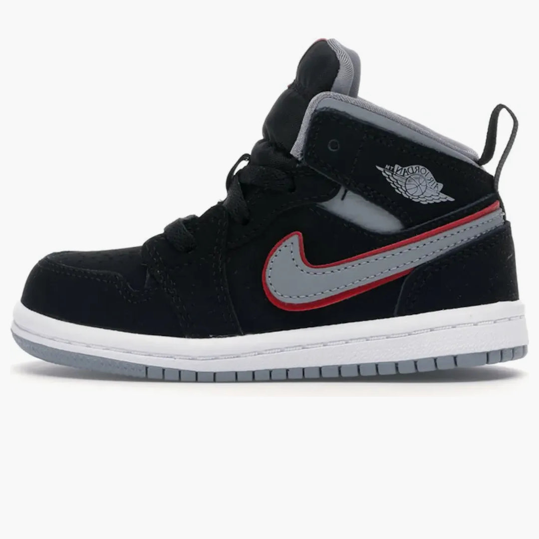 Jordan 1 Mid Black Particle Grey Gym Red (td)