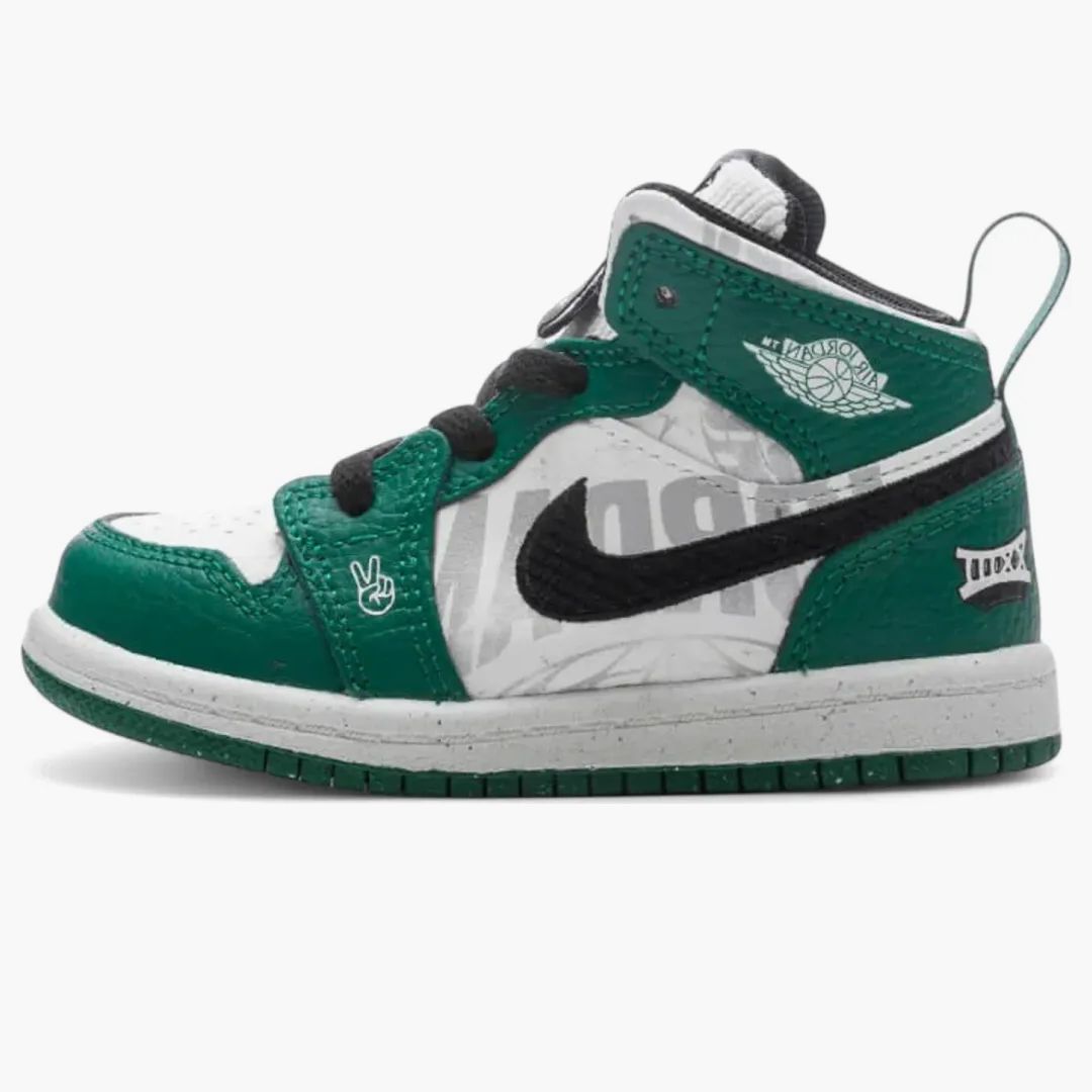 Der Jordan 1 Mid SE Overbranded für Kleinkinder bringt ikonische Basketball-Energie in einen einzigartigen Stil. Mit subtilen Akzentfarben und einem zurückhaltenden Design ist dieser Sneaker ein Highlight für kleine Ballspieler. Die qualitativ hochwertige Verarbeitung verspricht Langlebigkeit und Komfort, während das charakteristische Branding dieses Modells die Herzen von Sammlern und Nachwuchs-Entdeckern im Modebereich höherschlagen lässt. Hier trifft Tradition auf einen Hauch von Moderne, perfekt für kleine Modefans, die das Spiel lieben.Authenticity Guaranteed
