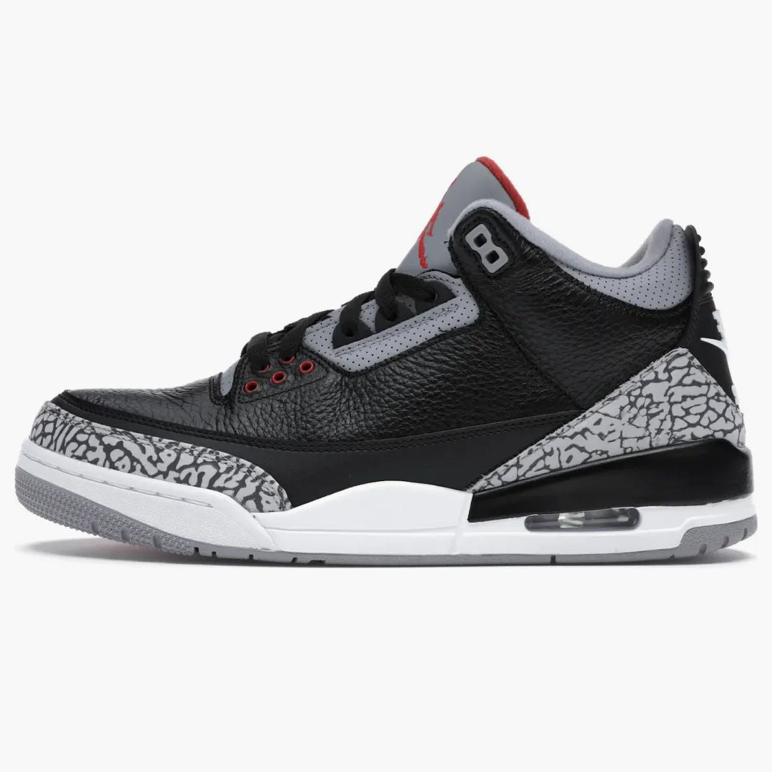 A true highlight in the sneaker universe: the Jordan 3 Retro Black Cement (2018). This new edition makes the hearts beat faster because it combines a nostalgic design with modern details. The black leather superstructure harmonizes perfectly with gray and red accents, while the legendary elephant pattern gives the model its unique touch. The reintroduction of the original 'Nike Air' Logos brings authentic retro-vibes directly to your feet. A celebrated model for Michael Jordan's 55th birthday, which should not be missing in any sneaker collection. Secure your personal style coup and experience how history and modernity meet.Authenticity Guaranteed