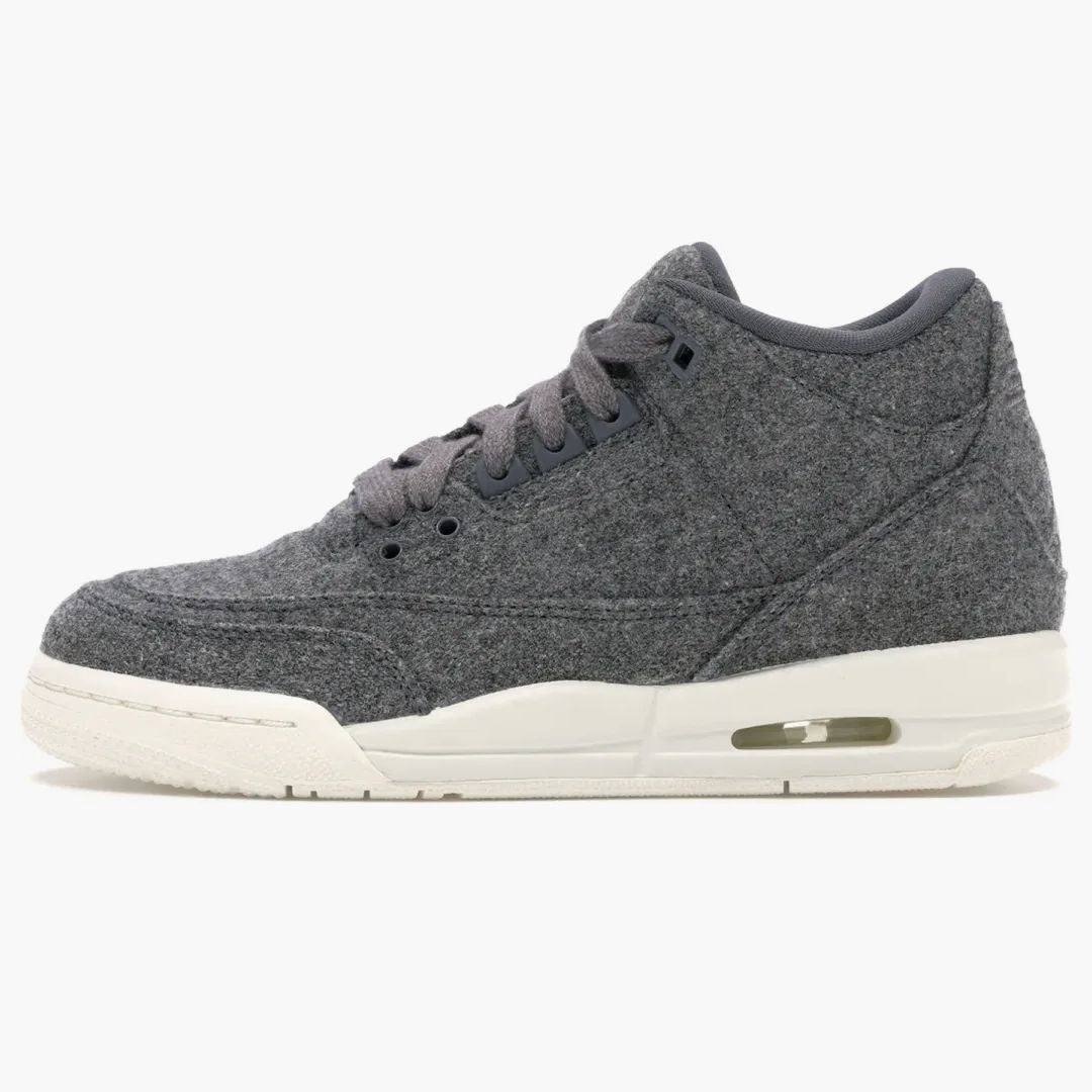 The Jordan 3 Retro Wool (GS) is a highlight from the festive 2016 collection of Air Jordan. Created for young sneakers fans, this shoe relies on high-quality wool instead of traditional leather. The dark gray tone in combination with a light sole gives it a sophisticated note. This model scores with its subtle style, while the iconic jumpman decorates the tongue and heel. Equipped with a white rubber sole and visible air elements, this shoe is made for versatile appearances. The innovative choice of material remains particularly fascinating, which gives this classic a whole new look. The original release date was December 17, 2016.Authenticity Guaranteed