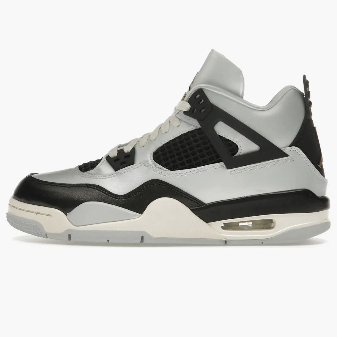 The Jordan 4 Retro Platinum Gold (GS) offers a harmonious mix of noble colors and masterful design in children's sizes. Pure platinum with metallic gold accents merge here, while black elements give the look depth. The hard -wearing combination of synthetic and real leather ensures durability, while the unique design stands out by the side panels inspired by basketball networks. A special highlight are the metallic shiny jumpman symbols on the tongue and heel, which give the sneaker a luxurious touch. A real eye -catcher for style -conscious kids.Authenticity Guaranteed
