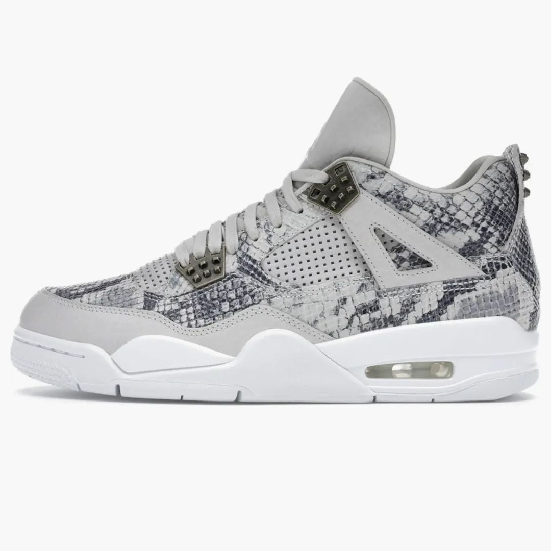 The Jordan 4 Retro Snakeskin combines legendary design with modern accents. The white leather upper material is elegantly complemented by Pure Platinum and Wolf Gray tones. The black inner lining ensures additional comfort, which gently surrounds the foot. The Jumpman logo on the heel and tongue is striking, while the rubber sole convinces with its handy structure. The air unit in the sole dampens every step optimally and thus protects joints and muscles. A highlight is the sophisticated art loan leather pattern, which causes a noble look from the middle of the foot to the heel. Since the publication on May 21, 2016, this sneaker has been a real must-have for lovers of exclusive designs.Authenticity Guaranteed