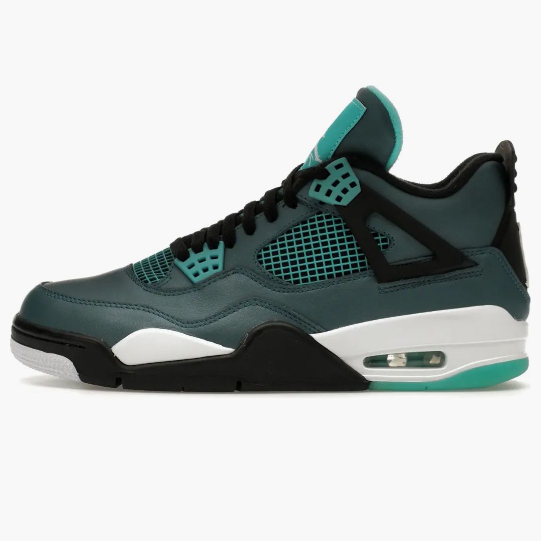 The Jordan 4 Retro Teal is a real eye -catcher in a unique color composition. The striking model scores with a deep teal tone made of leather, complemented by black accents and teal highlights. Retro elements adorn the tongue, feed and the eyelets, while the side mesh panel style combines style and breathing activity. Flex grooves and striking air in damping offer comfort and stability. The design is rounded off by black and white accents on the middle sole and a white jumpman on the heel. Once on March 14, 2015, this sneaker set standards in style and function.Authenticity Guaranteed