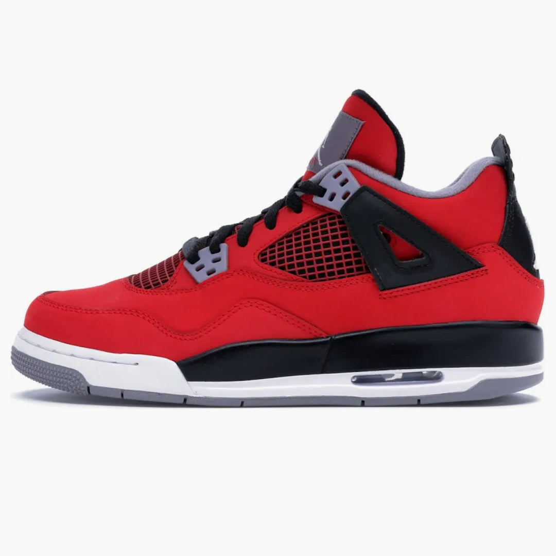 The Jordan 4 Retro Toro Bravo (GS) is a real eye -catcher who attracts everyone's attention with its lively color dress and legendary design. Especially designed for younger sneaker fans, this shoe presents itself with a bright red Nubuk upper material that is broken by striking black elements. These stylish details give the shoe its striking look. While the foam intermediate sole with a visible Air element ensures optimal comfort with every step, the gray rubber sole promises with its fishing bone pattern and the pod-shaped inserts in black excellent support. White accents, such as the Jumpman logo, round off the overall design harmoniously. The Jordan 4 Retro Toro Bravo (GS) is the perfect choice for dynamic kids who want to refine their style with a pinch of retro flair.Authenticity Guaranteed