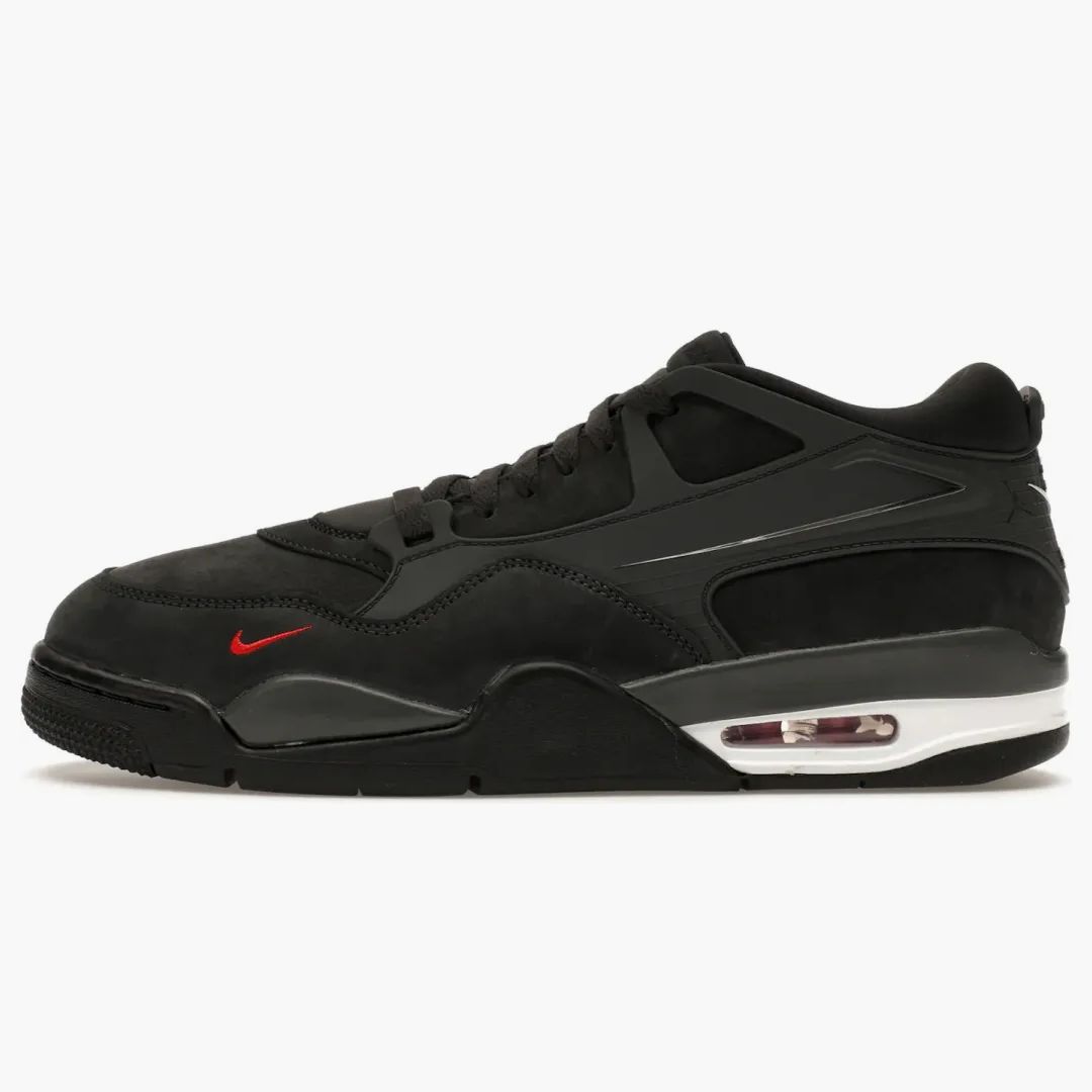 The Jordan 4 RM SP Nigel Sylvester Driveway Gray raises the established design of the brand to a new level, inspired by the creative view of the BMX athlete Nigel Sylvester. The upper material convinces with anthracite-colored suede, complemented by suitable TPU panels and shaped eyelets that contribute to the well-thought-out lace-up system. The springs damping is supported by the visible Air unit in the polyurethane intermediate sole, an iconic feature of the original Air Jordan 4. On the heel, 'Bike Air' branding and a small Jumpman accents, while a red swoosh on the suede mudguard ensures a lively contrast and underlines the dynamic choice of color of the Air brine insert. Published on August 8, 2024, this shoe sets a new standard for sporting elegance.Authenticity Guaranteed