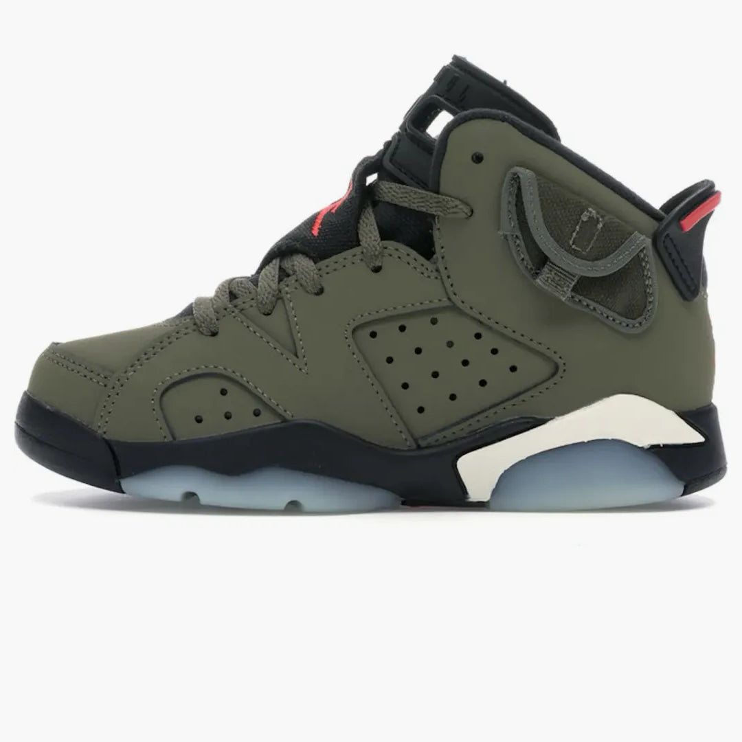 The Jordan 6 Retro Travis Scott impresses with a harmonious interplay between Suede and Canvas in an appealing color of British Khaki. The cheeky accents in Olive Green, black and strong red make it a real eye -catcher. Special features such as the cargo bag on the ankle and the striking logos of Cactus Jack and a renowned sports brand on the heel give the sneaker its unique character. Originally published on October 11, 2019 in the pre-school size, this masterpiece convinces with its incomparable style, which enthusiastically enthusiastically and enthusiastically enthusiastically enthusiastically enthusiastically.Authenticity Guaranteed