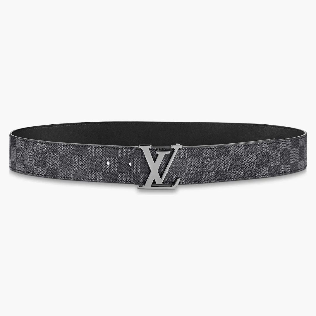 Louis Vuitton LV Initial Silver Buckle Reversible Belt Damier Graphite 40mm Black Lining