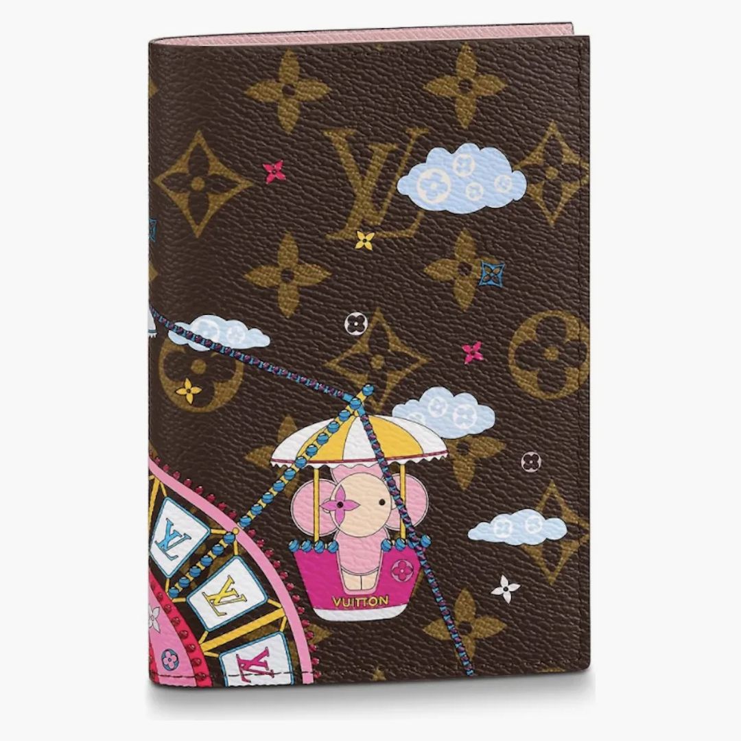 Louis Vuitton Passport Cover Monogram (3 Cqrd Slot) Vivienne Holiday Rose Ballerine Pink