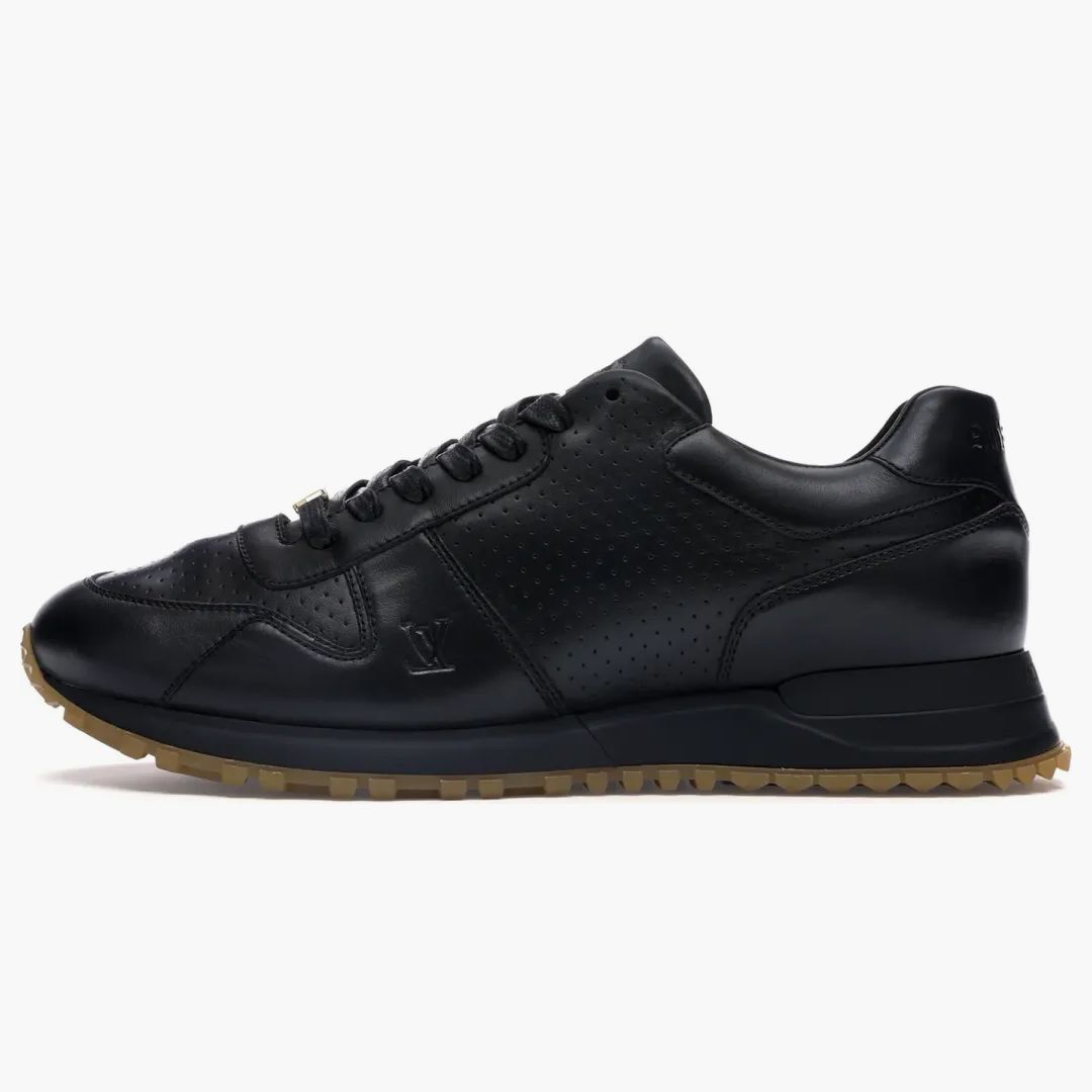 The Louis Vuitton Run Away Supreme Black Gum combines luxurious style with sporty elegance. This exquisite sneaker is the perfect addition to every wardrobe and combines the highest quality materials with impressive processing. The design in an elegant black ensures a timeless look, while the comfortable rubber sole ensures optimal wearing comfort. Perfect for the demanding lover of High-Fashion that attaches importance to quality and style. Discover a new level of luxury and comfort with this impressive shoe from Louis Vuitton.Authenticity Guaranteed
